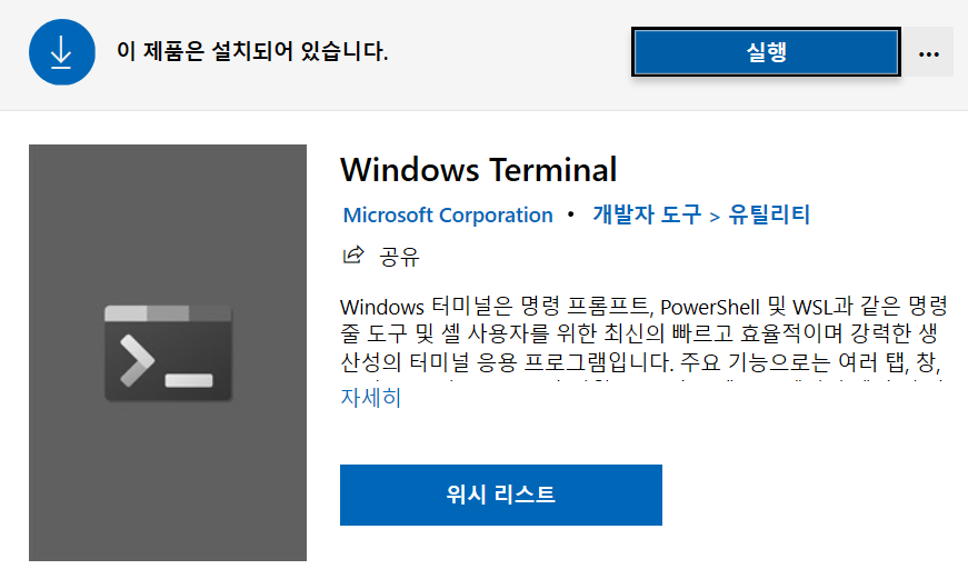 3. Microsoft Store 에서 Windows Terminal 설치 (옵션)