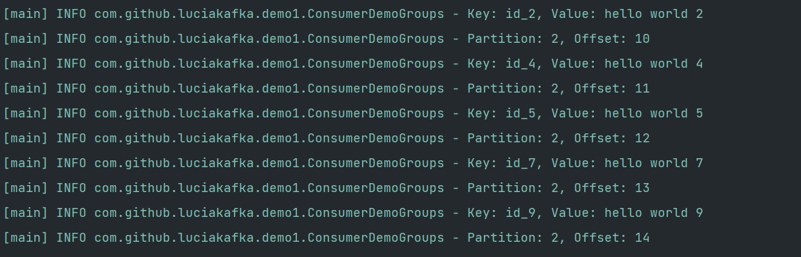 [main] INFO org.apache.kafka.clients.consumer.internals.ConsumerCoordinator - [Consumer clientId=consumer-testing-cg-1, groupId=testing-cg] Setting offset for partition coding_topic-2 to the committed offset FetchPosition{offset=10, offsetEpoch=Optional[0], currentLeader=LeaderAndEpoch{leader=Optional[broker1:9092 (id: 1 rack: null)], epoch=0}}