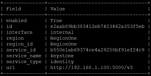 # openstack endpoint create --region RegionOne identity internal http://[컨트롤러 노드 관리용 IP]:5000/v3