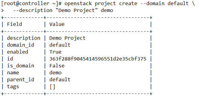 # openstack role add --project demo --user demo demo