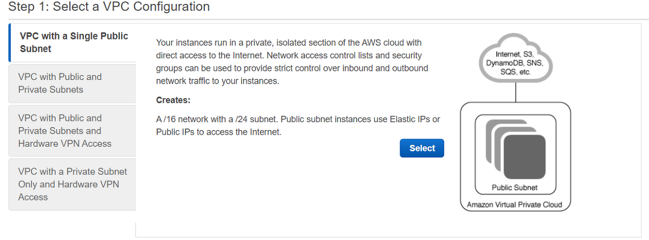 Services > VPC > Dashboard > Launch Wizard