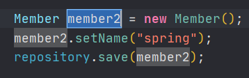 3-1) 테스트 샘플 생성 : member 객체 2개 (member1의 name: spring ; member2의 name: summer)
