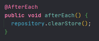 각 테스트 메서드 실행 후 (afterEach) clearStore()메서드가 실행된다.