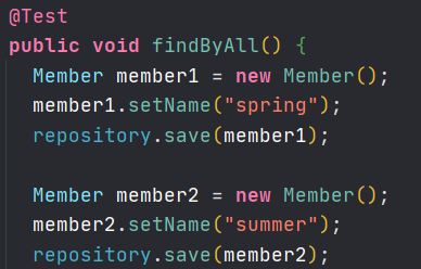 4-1) 테스트 샘플 생성 : member 객체 2개 (member1의 name: spring ; member2의 name: summer)