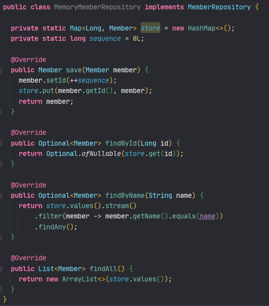 1. MemoryMemberRepository.java에 clear 메서드 추가
